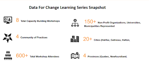 Participants who were unable to attend the workshops throughout the series can access recordings and materials through the Data for Change Knowledge Hub. This hub is a centralized resource for community-based organizations across the Greater Toronto Area who are working to collect and use social identity data responsibly, thoughtfully, and effectively.