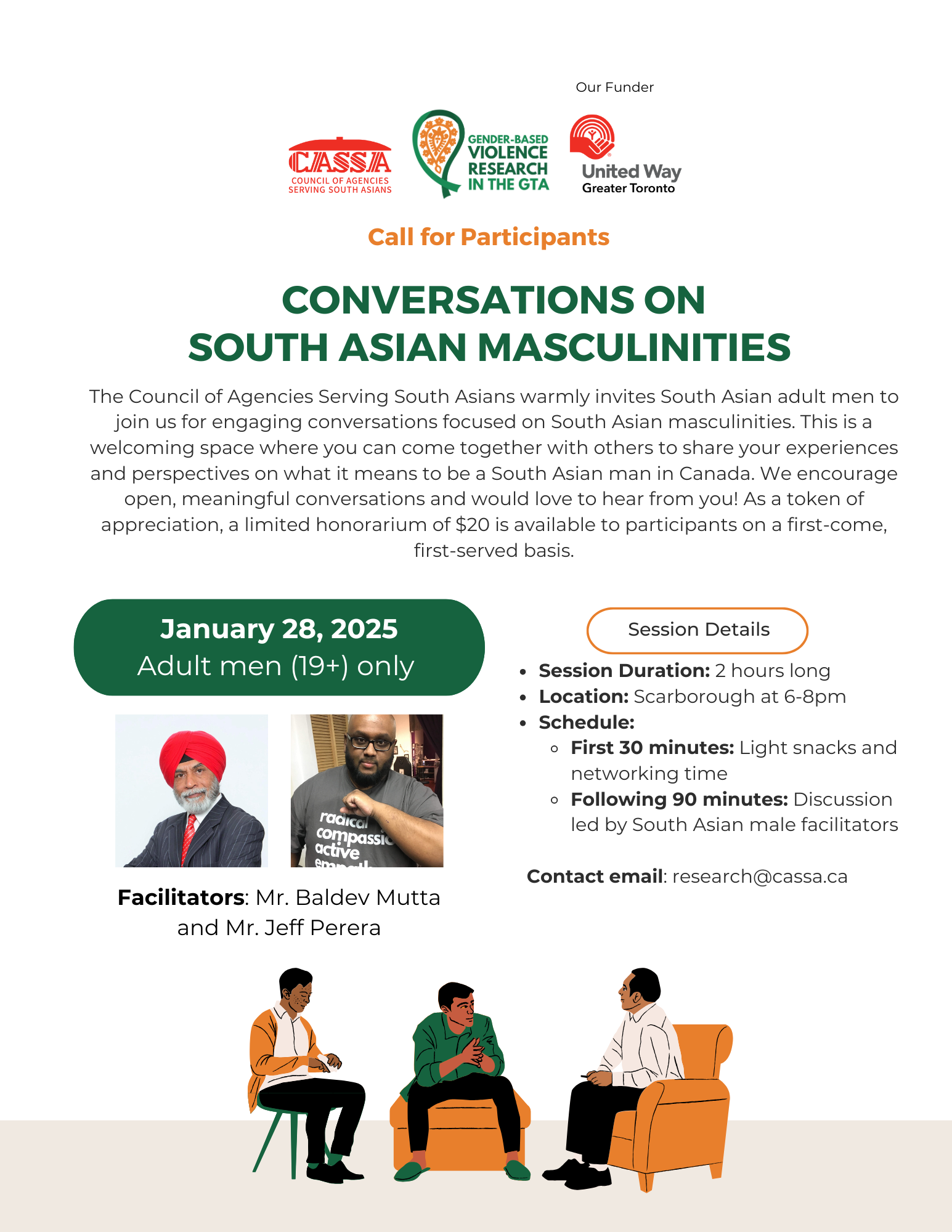 This project is a deliberate attempt to meld the lived experiences and knowledge of community members with experts, leaders, and academics to create a robust understanding of toxic masculinity and its causes. Topics of toxic masculinity and gender-based violence in the South Asian context in Canada are severely neglected in academia and community capacity building. CASSA aims to help bridge these gaps and create strong community resources.